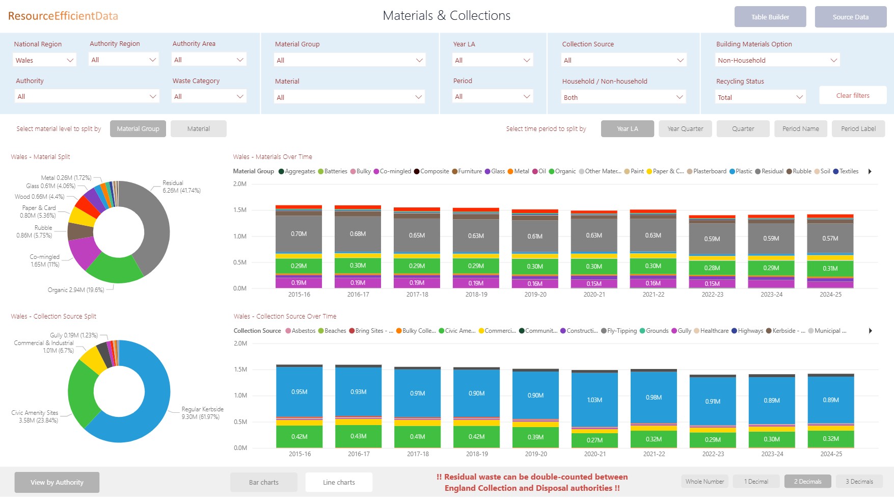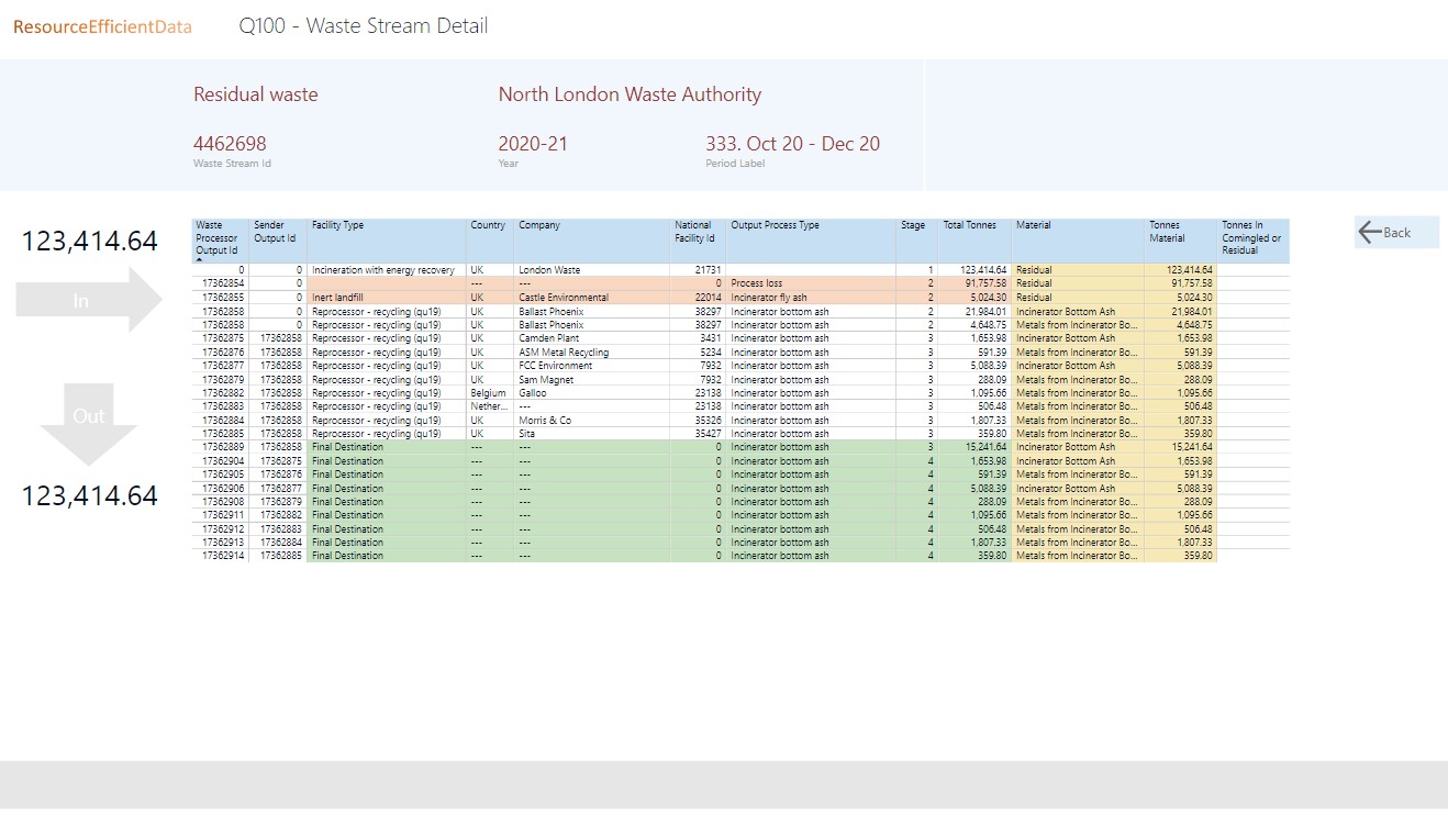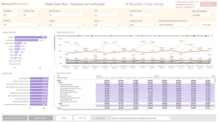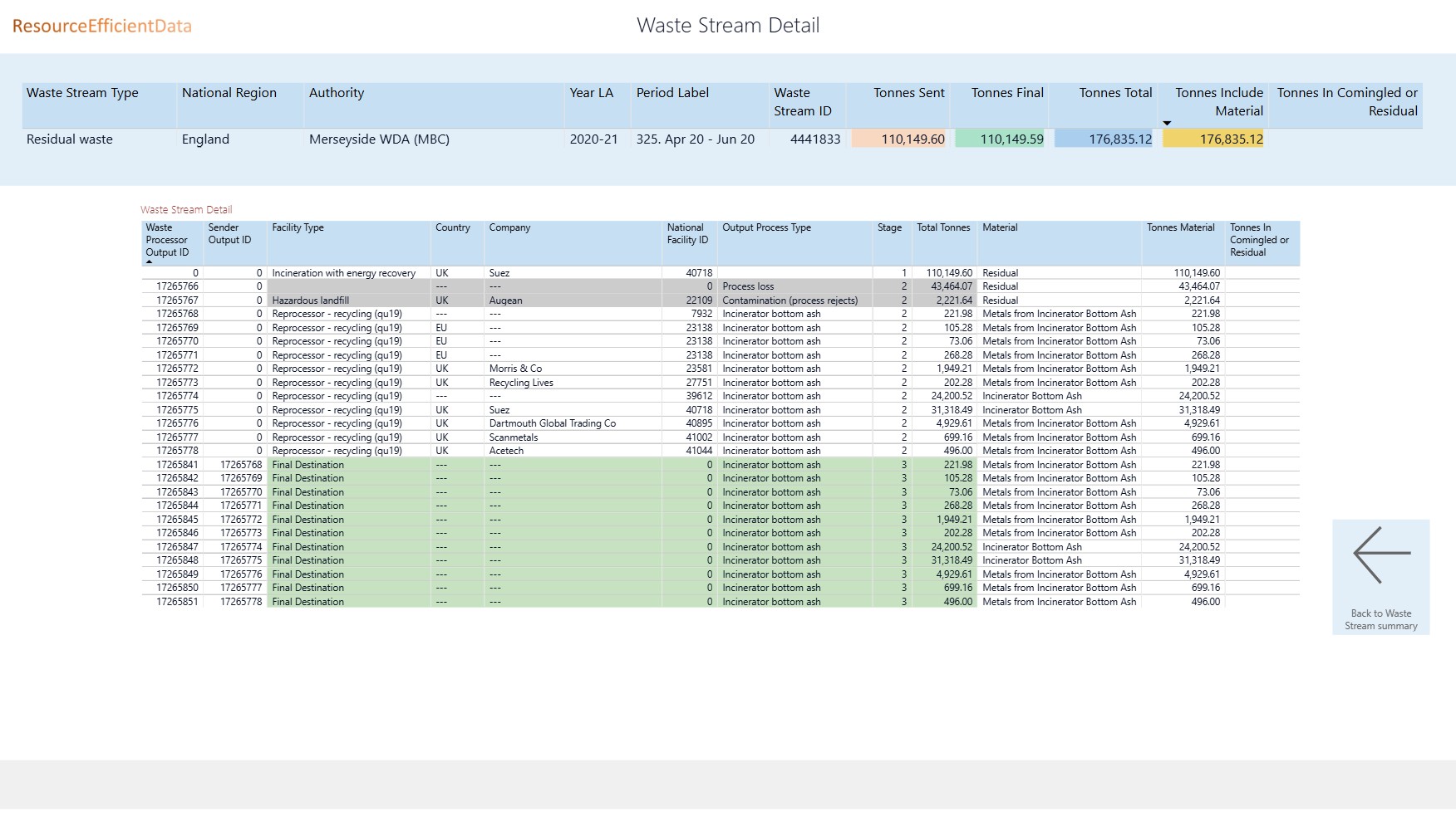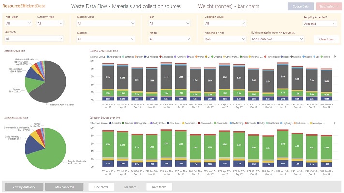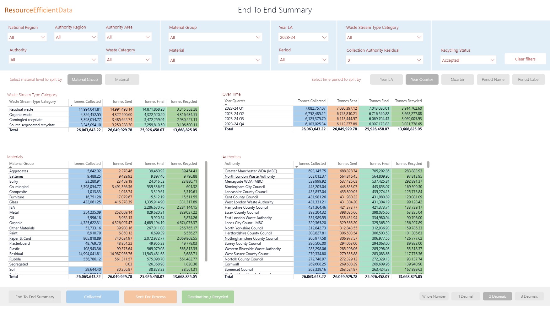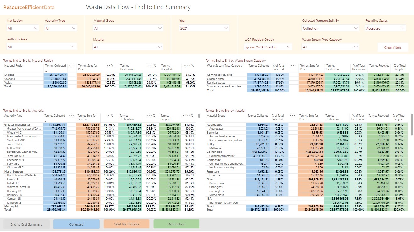 Summary of tonnages collected, sent for processing, reached destination and recycled from Waste Data Flow