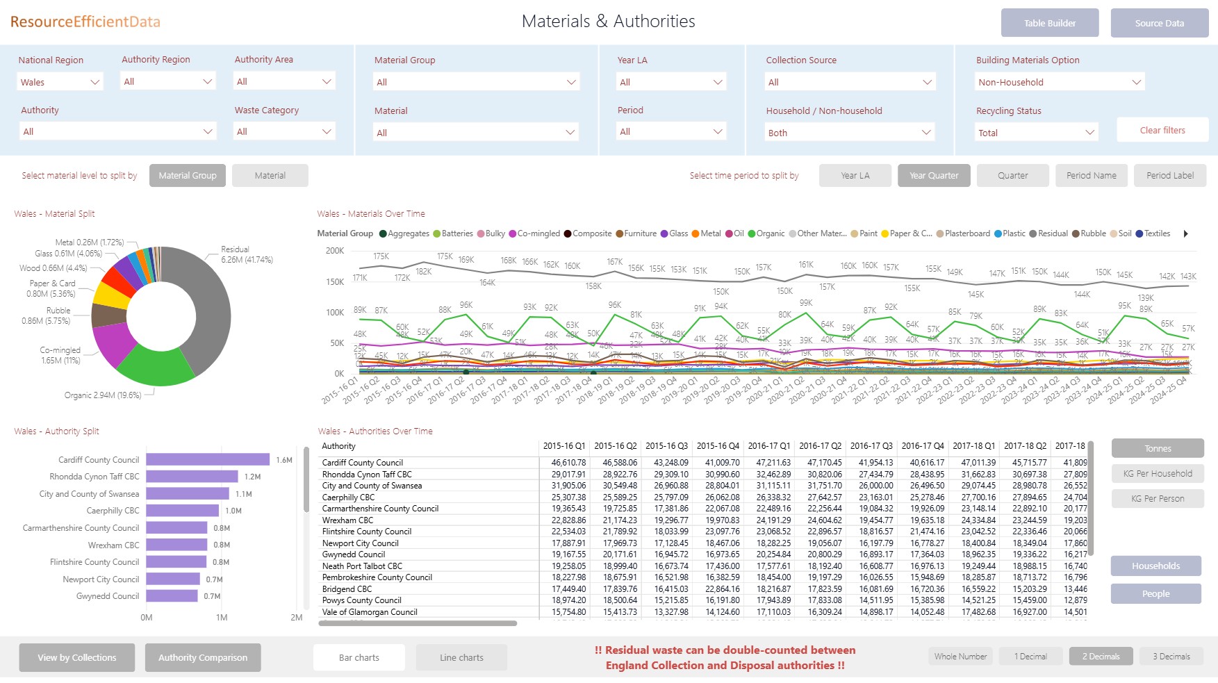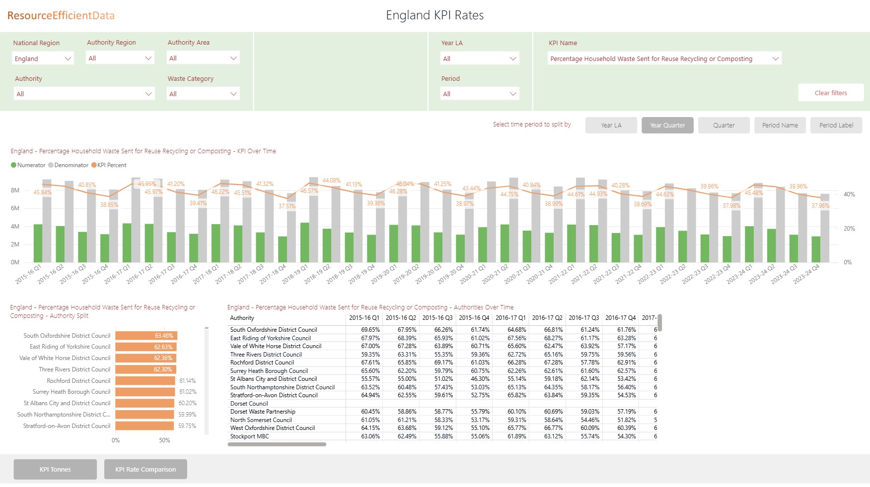 Quarterly summaries of the main recycling KPIs from Waste Data Flow